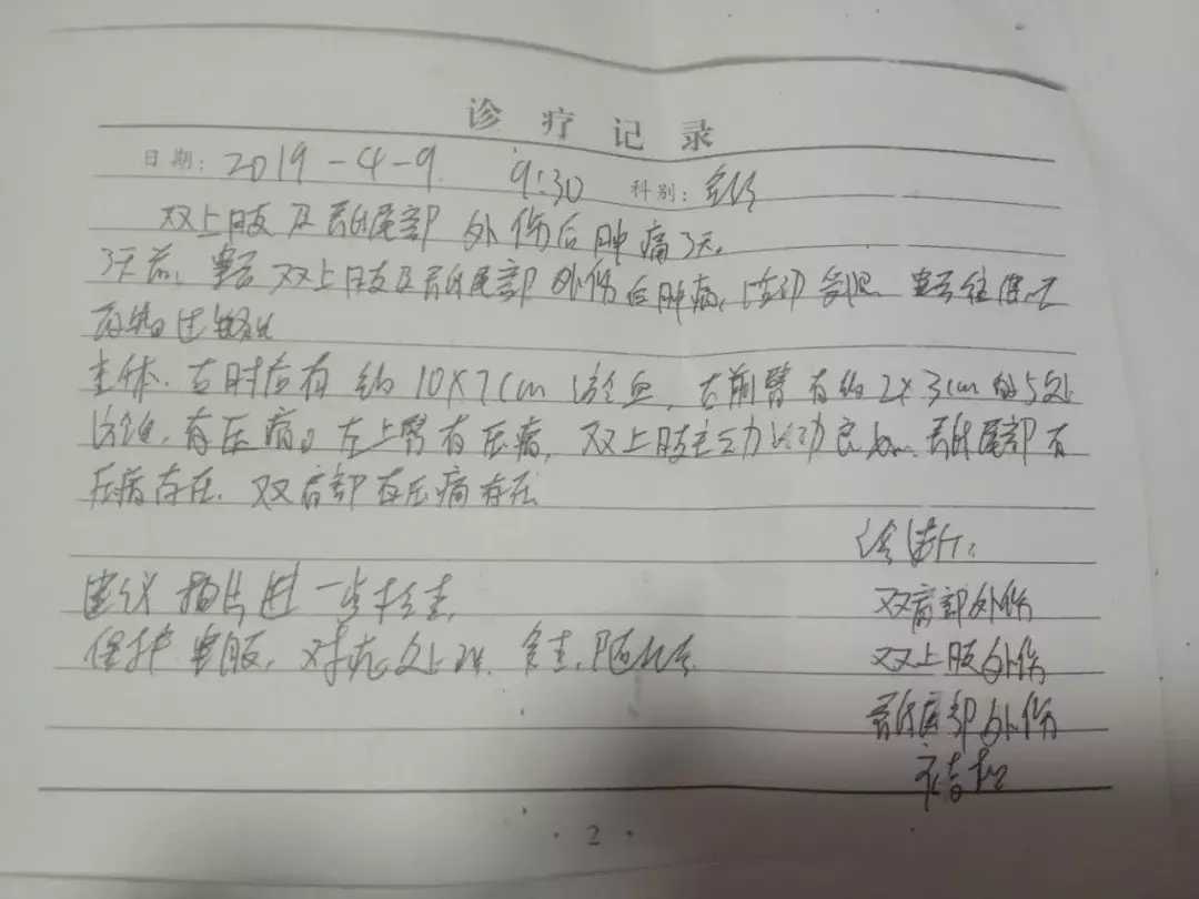 4月9日,李星星在烟台山医院做了简单的外科检查,上图是医生手写的诊断书