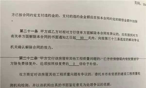 而正当业主准备开始维权时,才发现购房合同上只要牵扯到开发商违约的全部零赔付。“例如,合同第17条“全装修达不到附件三约定0倍赔偿;合同22条,交付房屋有工程质量问题,0倍补偿。”刘先生称除了这两条,合同还有诸多不平等条款,这让业主们直呼霸王条款、上当受骗。