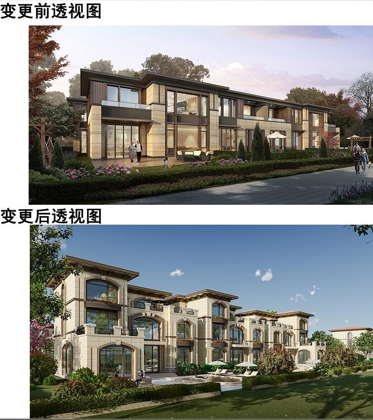 2、平面变更:原南侧1#、2#、6#、7#、8#、9#、10#、11#、12#、14#、15#、16#、17#二层低层联排双拼住宅变更为三层多层联排住宅,每栋楼保证3户,楼号分别为1#~13#,取消南侧地库。