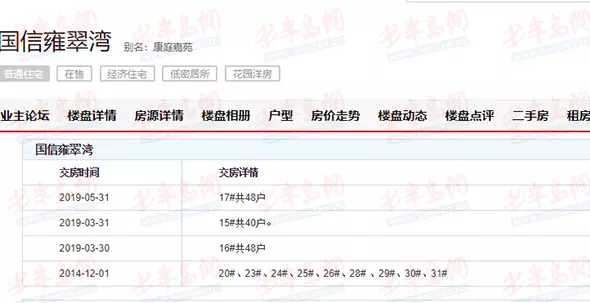某房产网站关于国信雍翠湾交付相关信息的截图