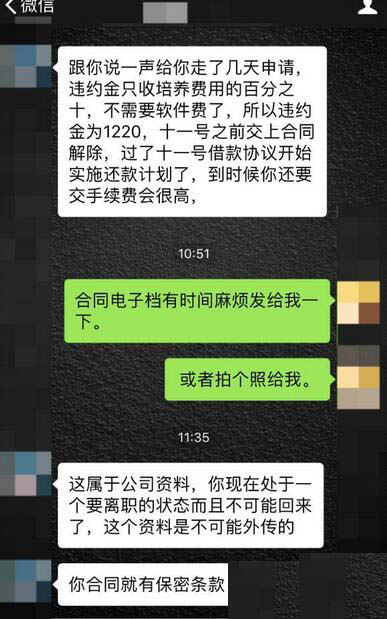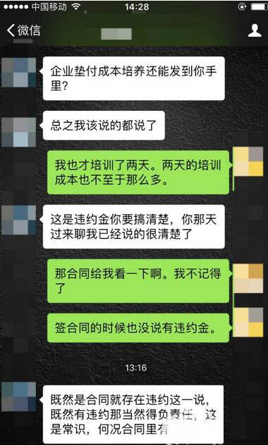 8月25日,赵女士开始了达内科技的培训课程,但上了两天课,发现课程并不实用,于是向达内科技提出解除协议,但要付出2000元的违约金。“之前签协议时,工作人员根本没有跟我说违约金的事,我要求重新查看协议,工作人员也多次拒绝。”