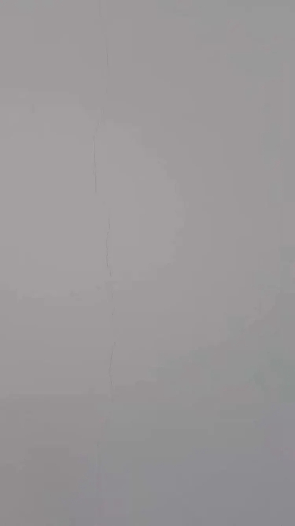 记者注意到,侯先生家渗水的位置墙面已经起鼓,部分墙皮脱落。侯先生说,他家的问题不仅仅是渗水,客厅墙面还有一道明显的裂缝,直接从上裂到下,触目惊心。