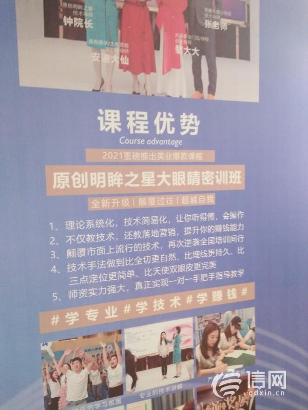 看出学员们的疑虑后,晚上7点,潘姓老师再次以赚钱为噱头给学员们打气,并向学员们宣传了“美仁国”的21大课程。信网了解到,“美仁国”的总部在广州,这家愿景成为中国女性第一创业平台的集团,在28日晚上露出了此次“原创明眸之星大眼睛密训班”的主要目的。晚上7点-晚上10点,潘姓讲师向学员们讲述了“美仁国”的由来,以及当今美业赚钱项目的趋势。