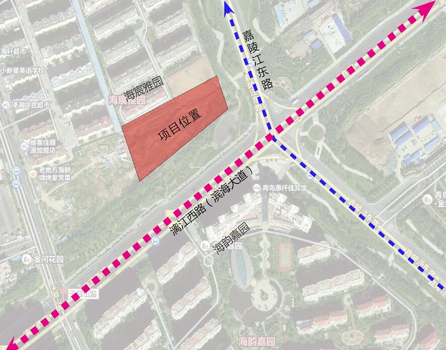 该规划地块位于青岛市西海岸新区滨海大道北侧,天目山路东侧。其中滨海大道是城市主干道,交通便利,地理位置优越.