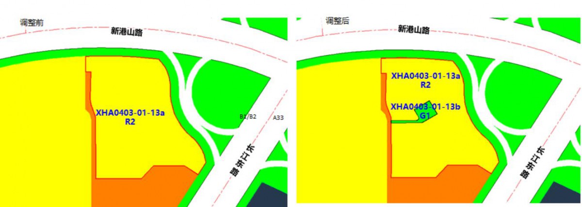 唐岛湾中心东片区控制性详细规划XHA0403单元调整,地块位于新港山路以南、长江东路以西,XHA0403-01-13b地块用地面积为0.05公顷,用地性质调整为公园绿地(G1)。