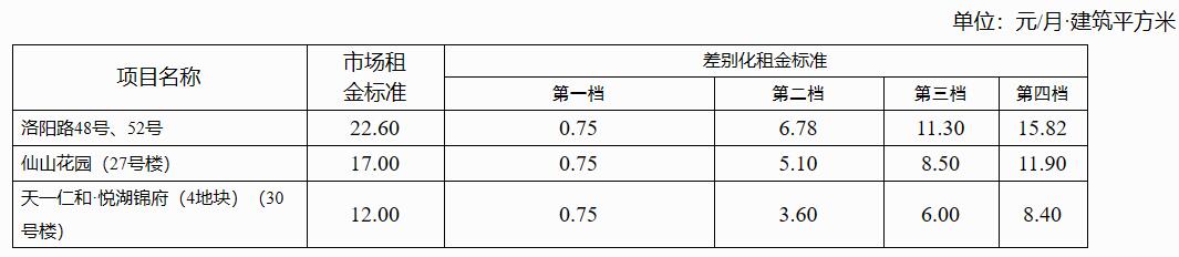 根据青岛市价格认证和监测中心出具的同区域市场租金价格认定结论,确定各项目住宅市场租金为:市北区洛阳路48号、52号项目为22.60元/月·建筑面积平方米;城阳区仙山花园项目为17.00元/月·建筑面积平方米;天一仁和·悦湖锦府项目为12.00元/月·建筑面积平方米。