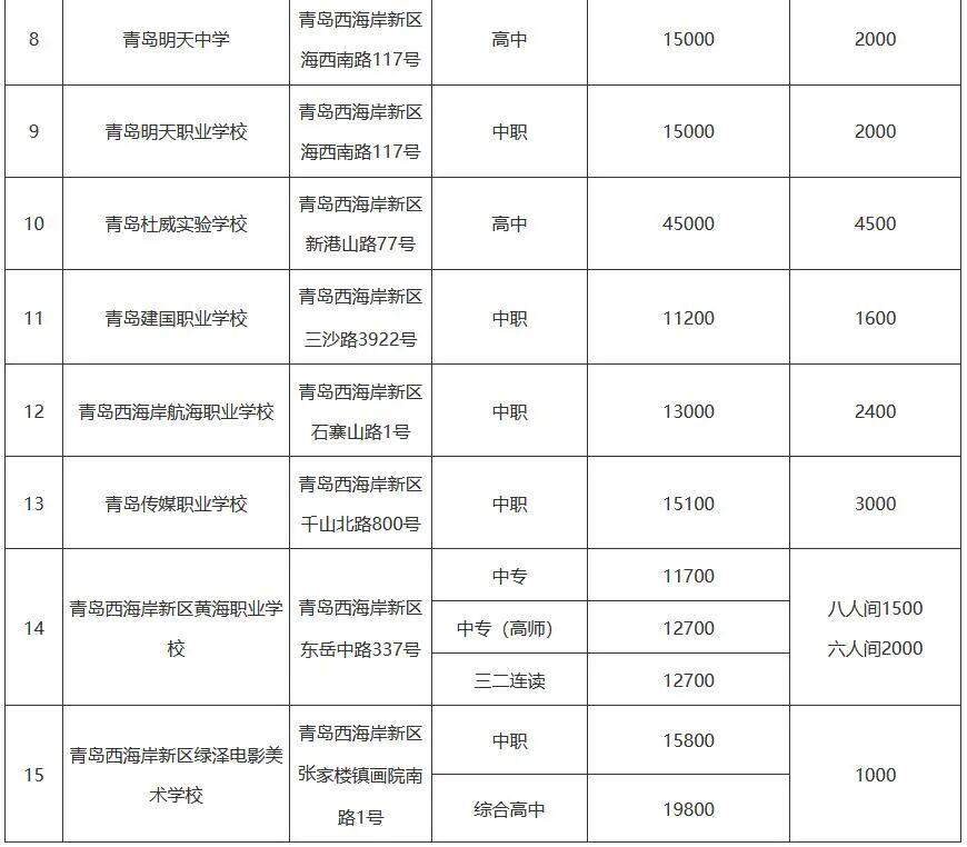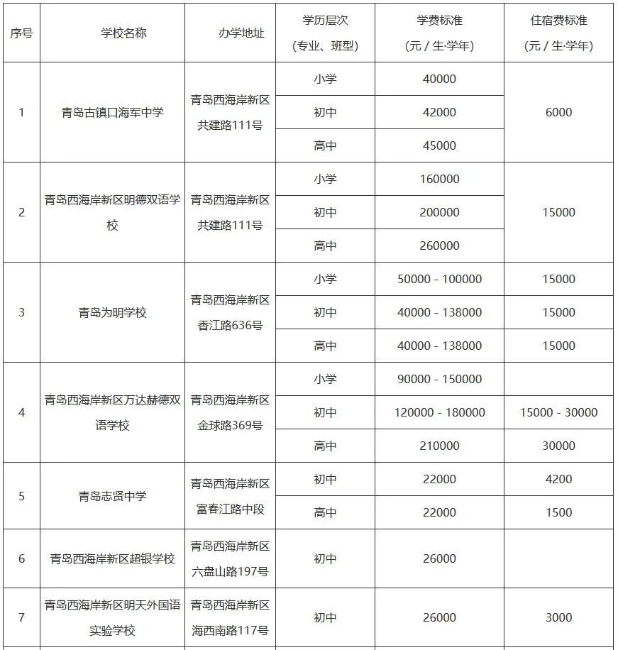 经民办学校申请,区发改局、区人力资源社会保障局审核认定,公布2024年青岛西海岸新区民办学校学费、住宿费标准。