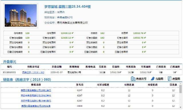 1月7日,莱西市梦想望城162套房源取得预售许可证,预售许可证号为西房注字(2018)060。