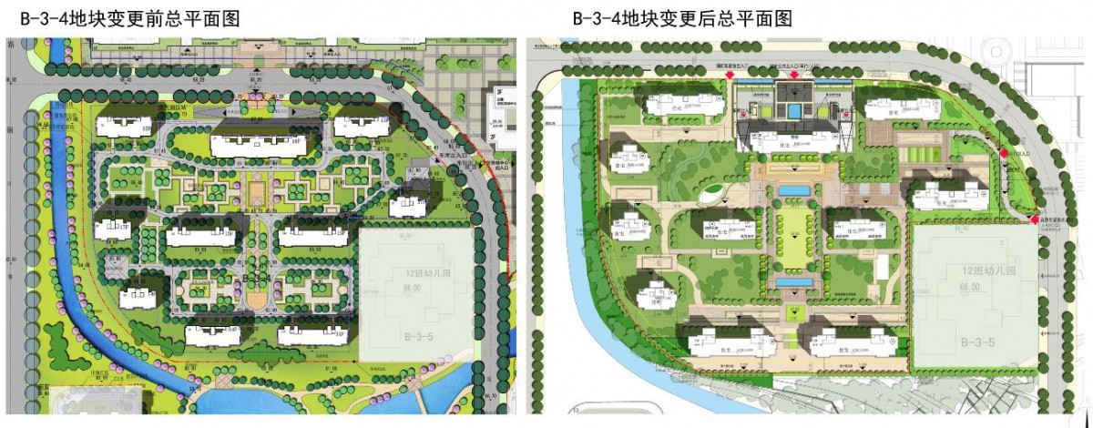 B-2-4地块主要变更内容为1、调整规划布局及建筑高度,优化城市界面。2、根据市场需求调整户型。