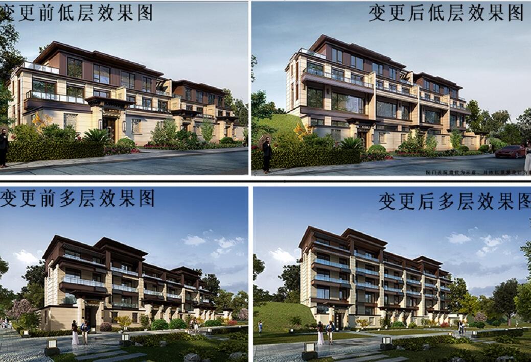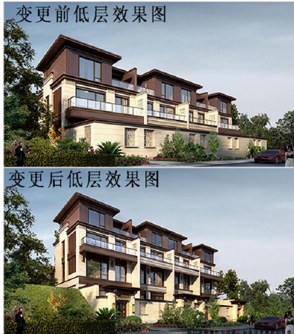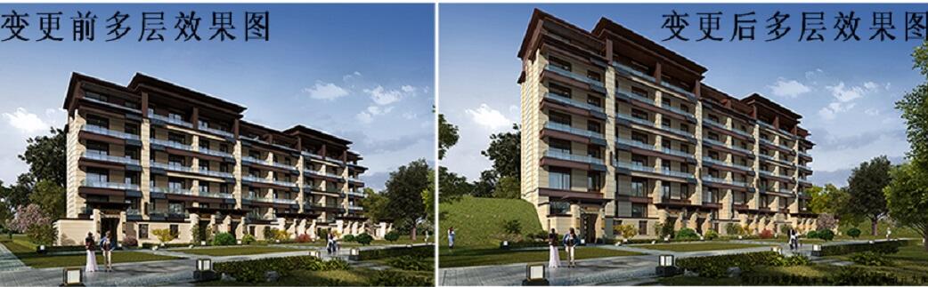 2、低、多层住宅区(3#、4#、13#、14#、17#、18#、25#、26#、31#、32#)南侧庭院标高降低至负一层标高处,取消南侧挡墙;南侧部分原储藏空间(结构架空层)作为门厅,建筑面积及效果图相应调整(详见变更图纸)。