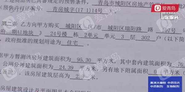 张女士是新疆人,因为女儿决定在青岛定居,所以他们老两口拿出来了毕生的积蓄,为女儿在城阳区的万科金域华府选购了一处楼房,当初在销售人员的推销下,他们选购了24号二单元的302户。