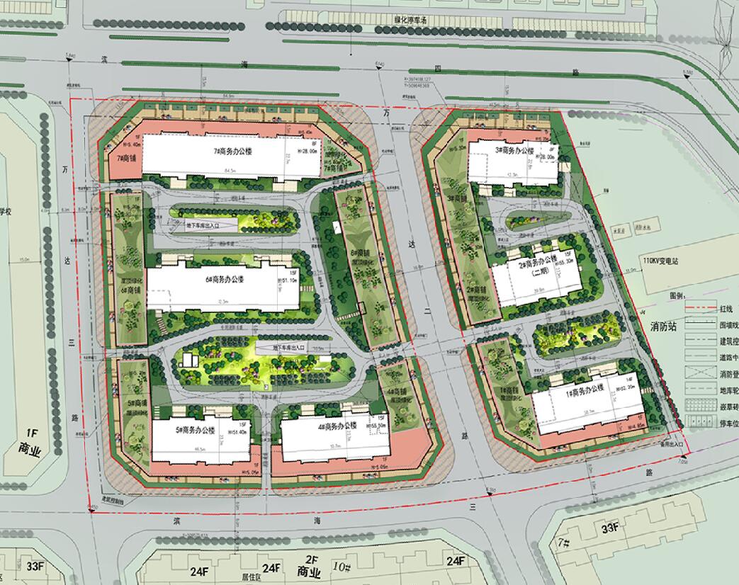 6、将6#楼首层一处美容美发(E轴交3轴)58.74㎡、一处洗衣房(F轴交18轴)24.84㎡、一处便利店(E轴交29轴)50.73㎡变更为物业管理用房。