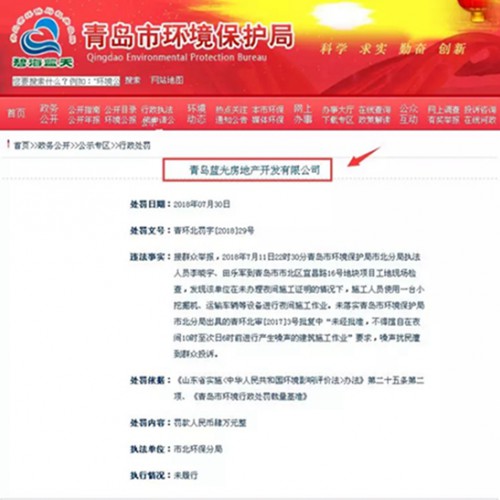 7月30日,青岛市环保局官方网站发布消息,该局对青岛蓝光房地产开发..
