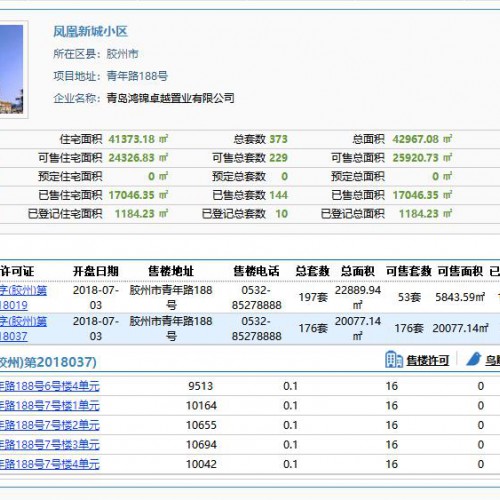 7月3日,青岛网上发布胶州凤凰新城小区373套房源最新预售证情况。预..